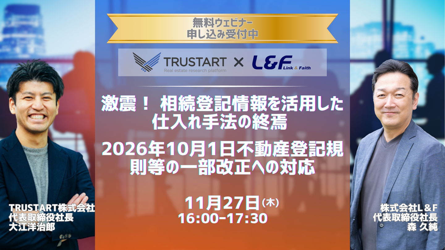 2026年10月1日の不動産登記規則等の一部改正により、従来の相続登記情報に依存した仕入れ手法から、今後の不動産仕入れにおけるデータ戦略の重要性について解説します。AIとビッグデータを活用し、物件の潜在的な価値評価、最適なターゲティング、および高精度な需要予測を実現するための具体的なアプローチを紹介。データドリブンな意思決定により、非効率な営業活動を削減し、競合他社に先駆けて良質な仕入れ案件を発掘するための「勝者のデータ戦略」を提示します。